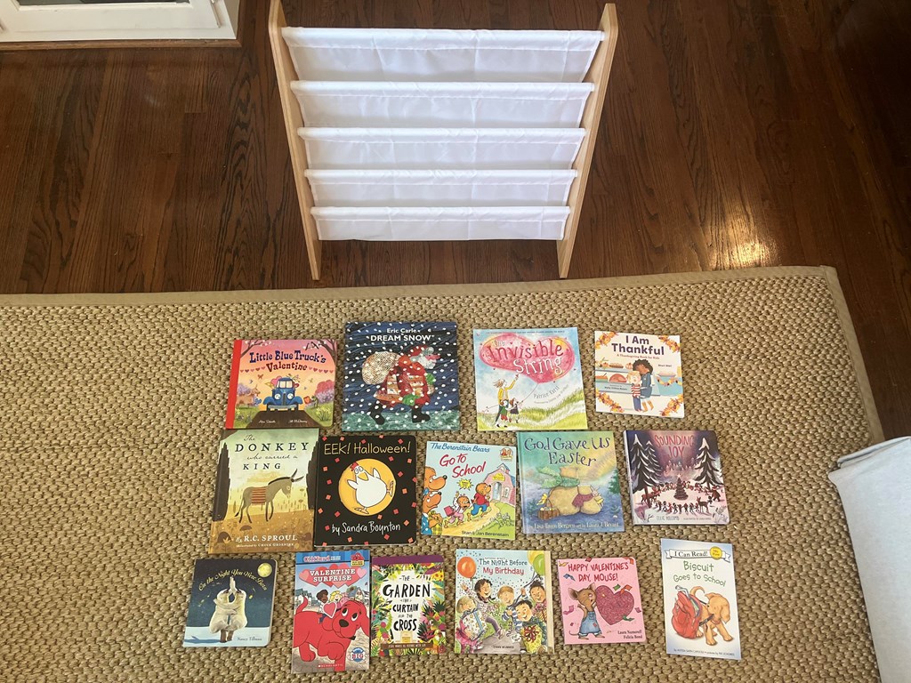 Value: $175 Bookshelf Dream Snow The Donkey who Carried a King The Invisible String Little Blue Truck Valentines I am Thankful Eek Halloween Berenstein Bears Go to School God Gave Us Easter The Garden, The Curtain and Cross Sounding Joy The Night Before my Birthday Happy Valentines Little Mouse Biscuit Goes to School On the Night You Were Born Valentines Surprise