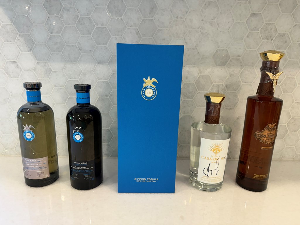 Value: $900 750 ML Casa Dragones Tequila Reposado - $150 750 ML Casa Dragones Tequila Añejo - $170 750 ML Casa Dragones Tequila Joven Sipping Tequila - $300 750 ML Casa Del Sol Tequila Reserve Añejo Angel's Reserve - $200 750 ML Casa Del Sol Blanco signed by Eva Longoria - $75