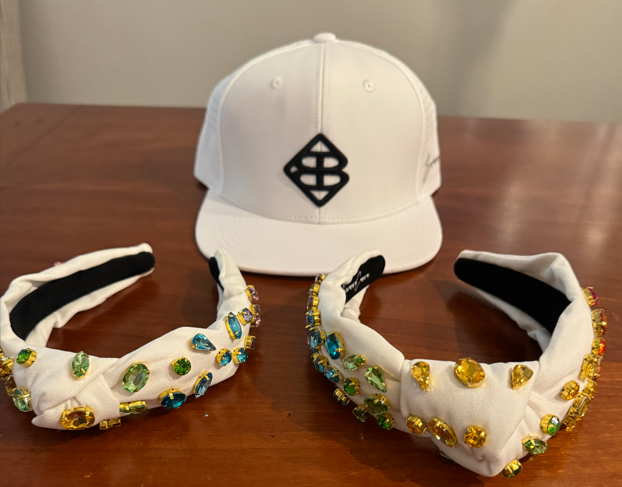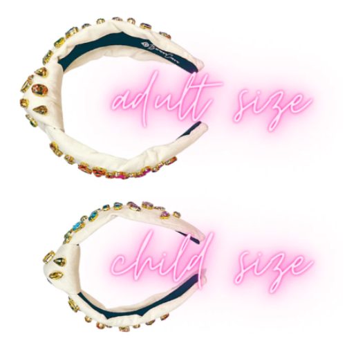 Value: $155 Matching adult & child ivory headbands with rainbow gradient hand-sewn crystals and a white Brianna Cannon logo hat Details: -Ivory canvas padded headband with crystals in a rainbow gradient pattern -Hand-sewn glass crystals -Child size headbands are suitable for children ages 7 and below. Children over the age of 7 can typically wear an adult size headband