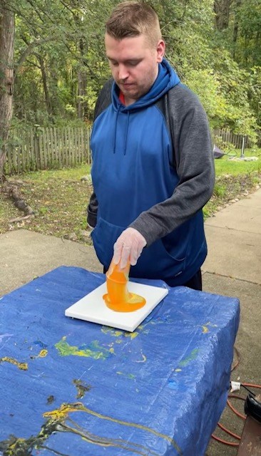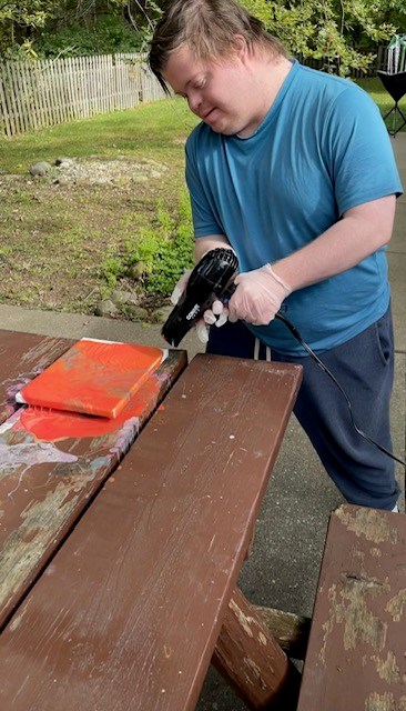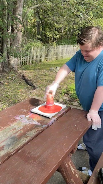 Our friends at our Maureen Lane home love to create original art and jewelry to display and sell at our administrative office. These three pieces are truly unique and eye catching. Meet the Artists: Alex is 39 and loves living at Maureen Lane with his three housemates. He enjoys taking long walks, dances with his friends, and loves his weekly visits with Mom and Dad. Alex is great at going with the flow and trying new things. Zach is 26 and recently graduated from the Pine Tree Center. He attends Lahser vocational program and instantly made new friends when he joined. Zach is bubbly and energetic, loves to tell a good joke or sing his lungs out. Goodsen is 34 and enjoys doing sensory activities, watching princess movies, and always looks forward to his weekly visit/outing with his family. Austin is 26 and lives at the Maureen home. He graduated from Pine Tree center last year and just started at Lahser vocational program. Austin is always in a good mood. He will compliment you and give you a movie quote in the same conversation. He loves seeing mom/dad and has transitioned smoothly into the Maureen home