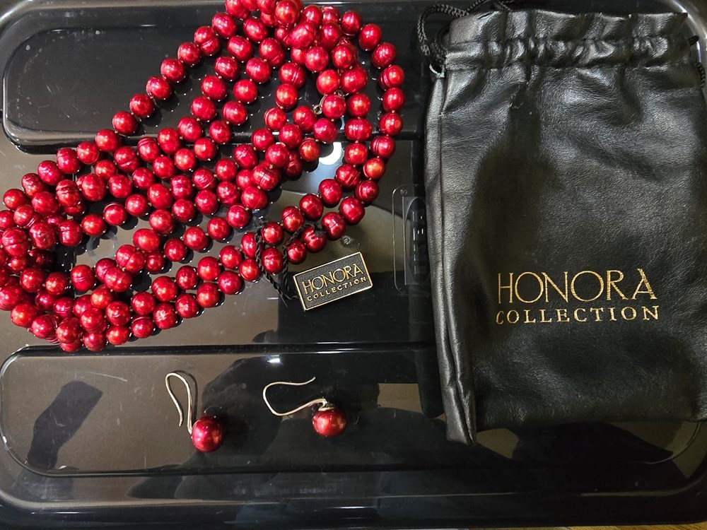 Elegant Honora Maroon Red Baroque Pearl Necklace - Elevate your style with this stunning Honora Maroon Red Cultured Baroque Freshwater Pearl Necklace. Featuring lustrous baroque pearls in a rich maroon hue, this 36-inch strand is elegantly crafted with rhodium over sterling silver for a timeless look. Perfect for layering or wearing solo, this versatile piece is a sophisticated addition to any jewelry collection. Don’t miss the chance to make this exquisite necklace yours! Now for the earrings - Radiate elegance with Honora Maroon Red Cultured Baroque Freshwater Pearl Dangle Earrings. Featuring lustrous, uniquely shaped maroon pearls, these earrings add sophistication to any look. Item Highlights: Dangle Earrings Pearl Type: Cultured Baroque Freshwater Pearls Color: Maroon Red; Design: Elegant and unique, perfect for any occasion These exquisite earrings are not only a symbol of elegance but also a statement of individuality. Whether you're attending a gala or enjoying a casual evening out, these earrings are sure to turn heads and spark conversations. Don't miss your chance to own this timeless piece of jewelry! Thank you for your support! Stay updated and connected—please follow us on Facebook: https://bit.ly/TCYM_FB