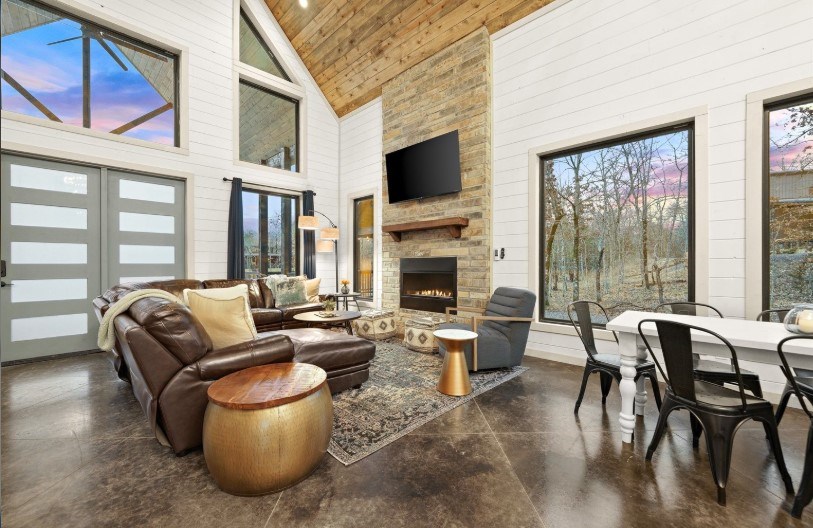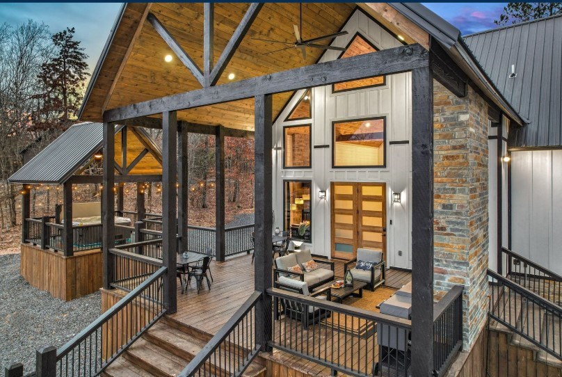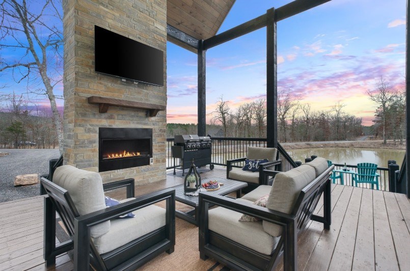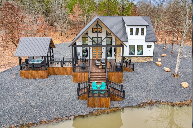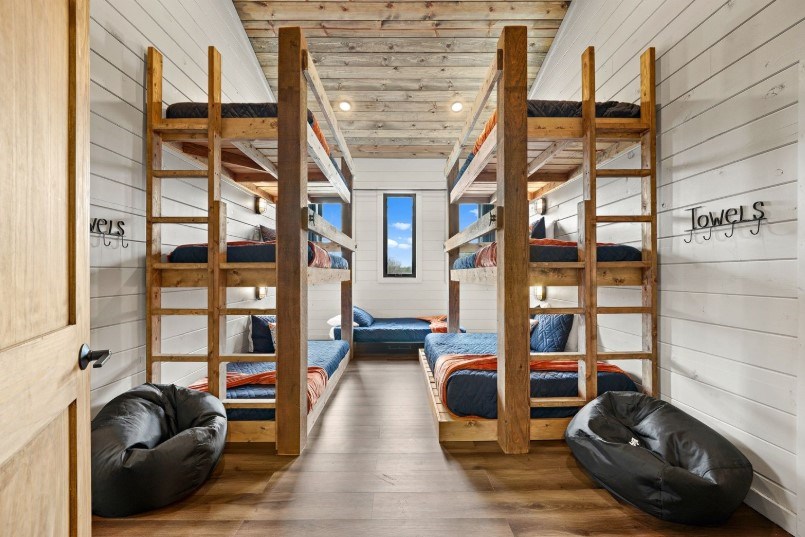 *Package must be booked within 12 months and travel completed within 18 months of purchase.* This Broken Bow cabin is the perfect retreat for families or groups, offering plenty of space to gather indoors and outdoors. Enjoy your own fishing pier and stocked pond, and relax on the back deck with soothing fountain sounds and stunning sunsets. With an open floor plan, high ceilings, and a covered porch with ample seating, it’s ideal for making lasting memories together. With 3 bedrooms and a bunk room, accommodating 16 is the least of your worries. There are 2 King Bedrooms with full bathrooms attached. A third King Bedroom with daybed and a bunk room with 1 double & 6 single twin beds share the third bathroom. Outdoors you'll find the covered patio with ample room adorned with couches, a fireplace, and a mounted television. A large grill is perfect for some steaks or burgers, and then kick back and relax in the hot tub. Just past the patio sits a large fire pit - perfect to sit around and cozy up, or even make some S'mores! Broken Bow is located in the Southeast corner of Oklahoma. Nearby, you will find Broken Bow Lake, Beavers Bend Marina, Hochatown State Park, and many more attractions for family fun! Amenities: Bedroom 1 - King, Bedroom 2 - King, Bedroom 3 - King plus Trundle Bed (2 Twin Beds), Bedroom 4 - 9 Bunk Beds, 7 Twin Beds, 1 Double Bed (Sleeps 8):Bathroom 1 - Toilet / Shower; Bathroom 2 - Toilet / Shower; Bathroom 3 - Toilet / Tub / Shower; Bathroom 4 - Toilet; Air Conditioning; Heater; Washer / Dryer; Fireplace; Wireless Internet; Dishwasher; Coffee Maker; Dishes / Utensils; Hot Tub / Spa; Fire Pit Game Room; Deck; Grill. Exceptions: Book your stay for 5 days and 4 nights, Sunday-Thursday. Subject to availability. Holidays excluded. No pets allowed. Primary guest must be at least 25 years of age. Thank you for your support! Stay updated and connected—please follow us on Facebook: https://bit.ly/TCYM_FB