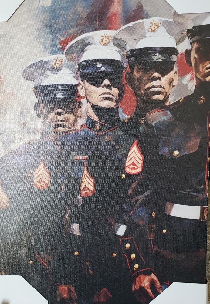 Embrace the spirit of patriotism and honor with this striking piece of wall art that pays homage to the United States Marine Corps. Measuring 10 x 16 inches, this artwork beautifully captures Marines in their distinguished dress blues, exuding dignity, pride, and unwavering commitment. This piece is perfect for any home or office space, serving as a constant reminder of the bravery and dedication of the men and women who serve our nation. Whether you're a military enthusiast, a proud Marine family, or simply someone who admires the valor of these remarkable individuals, this artwork will make a meaningful addition to your collection. Bid now to own this captivating piece that not only enhances your surroundings but also supports a great cause. Let this artwork inspire you and those around you to always strive for excellence and honor the legacy of the Marines. Thank you for your support! Stay updated and connected—please follow us on Facebook: https://bit.ly/TCYM_FB